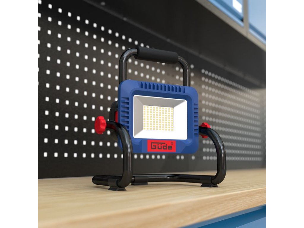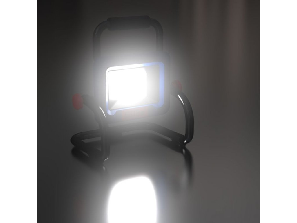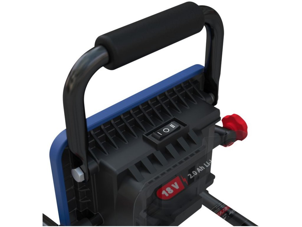 Akumulátorový LED reflektor zo série akumulátorového náradia 18V E3. Optimálne osvetlenie zabezpečuje 100 výkonných SMD LED diód. 2 svetelné toky: 2000 lm alebo 4800 lm. Teplota chromatickosti 6500 K (studená biela). Individuálne nastaviteľný uhol svietenia v rozsahu 120°. Držadlo na prenášanie s mäkkým úchytom. Na mobilné použitie okolo domu, v dielni alebo garáži. Bez akumulátora a nabíjačky.