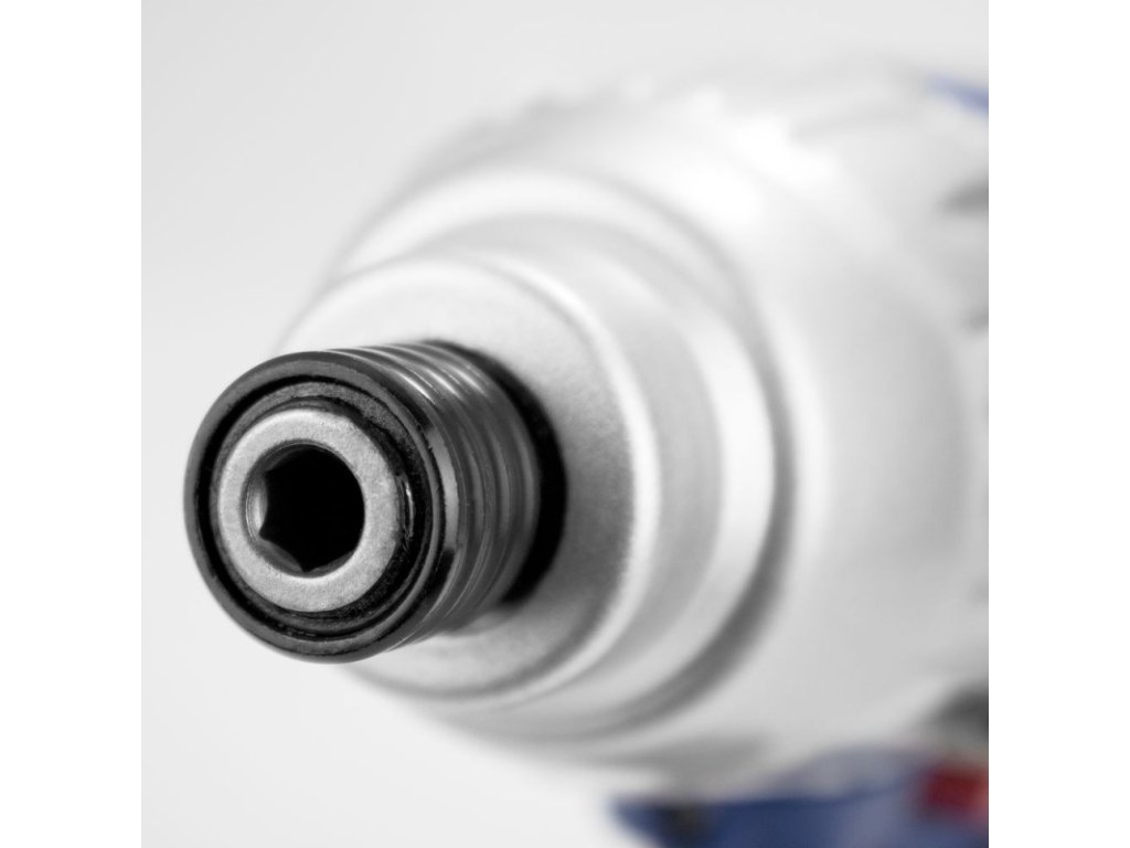 Akumulátorový rázový uťahovák zo série akumulátorového náradia 18V E3. Príručný a výkonný, dlhý len 185 mm. Upínanie nástrojov 1/4" Hex. Elektronika s reguláciou otáčok a ochranou proti preťaženiu. Pravo/ľavobežný chod s brzdou motora. Robustný obal prevodovky z hliníkovej zliatiny. Pogumovaná rukoväť pre bezpečnú prácu. Klip na opasok. Integrovaná LED k osvetleniu pracovnej oblasti. Bez batérie a nabíjačky.