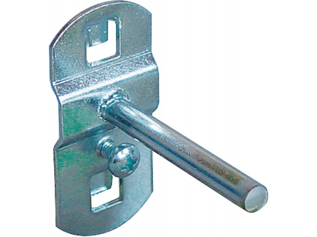 Držiak dielenského náradia a nástrojov na uchytenie do perforovanej steny a systémov so štvorcovými otvormi 8x8 - 10x10 mm, stredovou vzdialenosťou otvorov 38 mm vertikálne a horizontálne. Rovné zakončenie háčika, hĺbka 50 mm. V balení 1 ks.