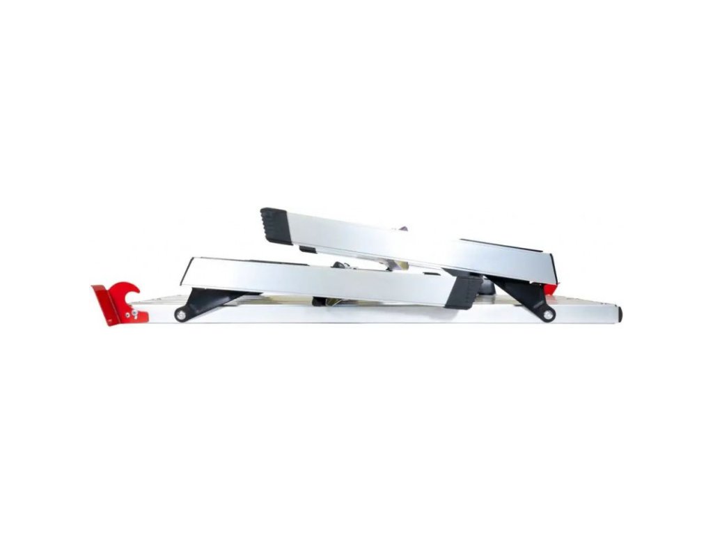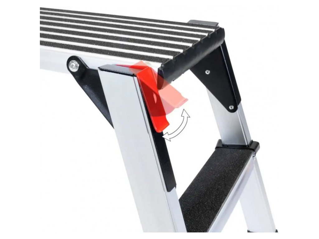 Praktická, skladacia pracovná plošina s veľkou plochou na všetky druhy práce. Či už na stavbe alebo v domácnosti, táto ľahká hliníková plošina je nenahraditeľným pomocníkom pri montáži, renovácii alebo dekorovaní. Plošina a schodíky s protišmykovou vrstvou pre bezpečné státie pri práci. Extra dlhá plocha pre pohodlnú prácu. Bezpečnostný držiak na zablokovanie v rozloženom stave. Vďaka jednoduchému skladaciemu mechanizmu sa dá zložiť, čím sa šetrí miesto. Gumené protišmykové nožičky.
