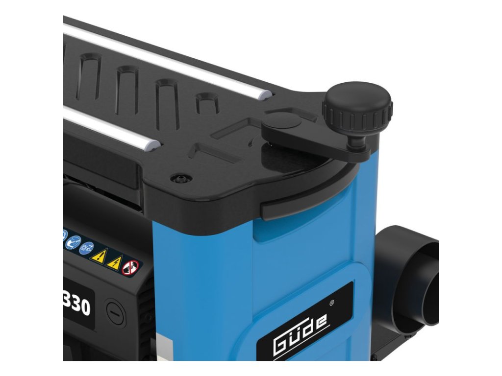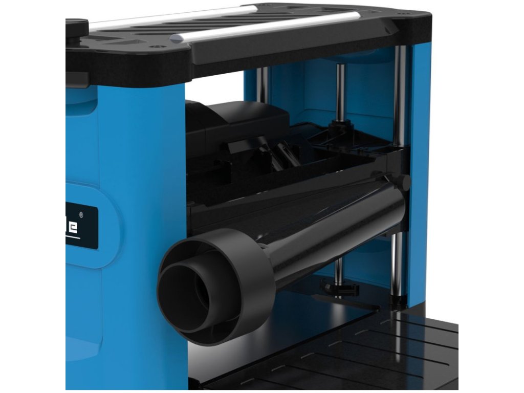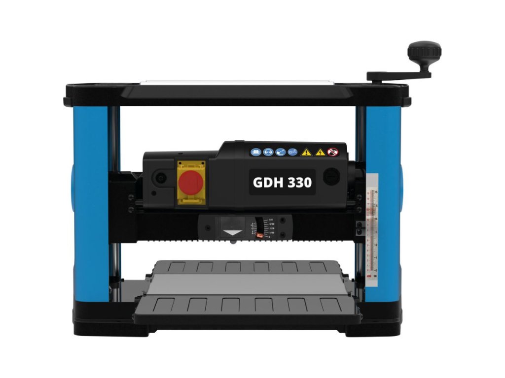 Drevoobrábací stroj s podávacím stolom, ktorý je možné sklopiť, plynulá centrálna regulácia hrúbky, robustné 4-hriadeľové vedenie, spínač nulového napätia, rukoväte na jednoduchšiu prepravu, hrdlo na odsávanie hoblín, ukazovateľ hĺbky rezu / mierka pre presné rezy. Vrátane vratných valčekov na obrobky a prítlačnej tyče.