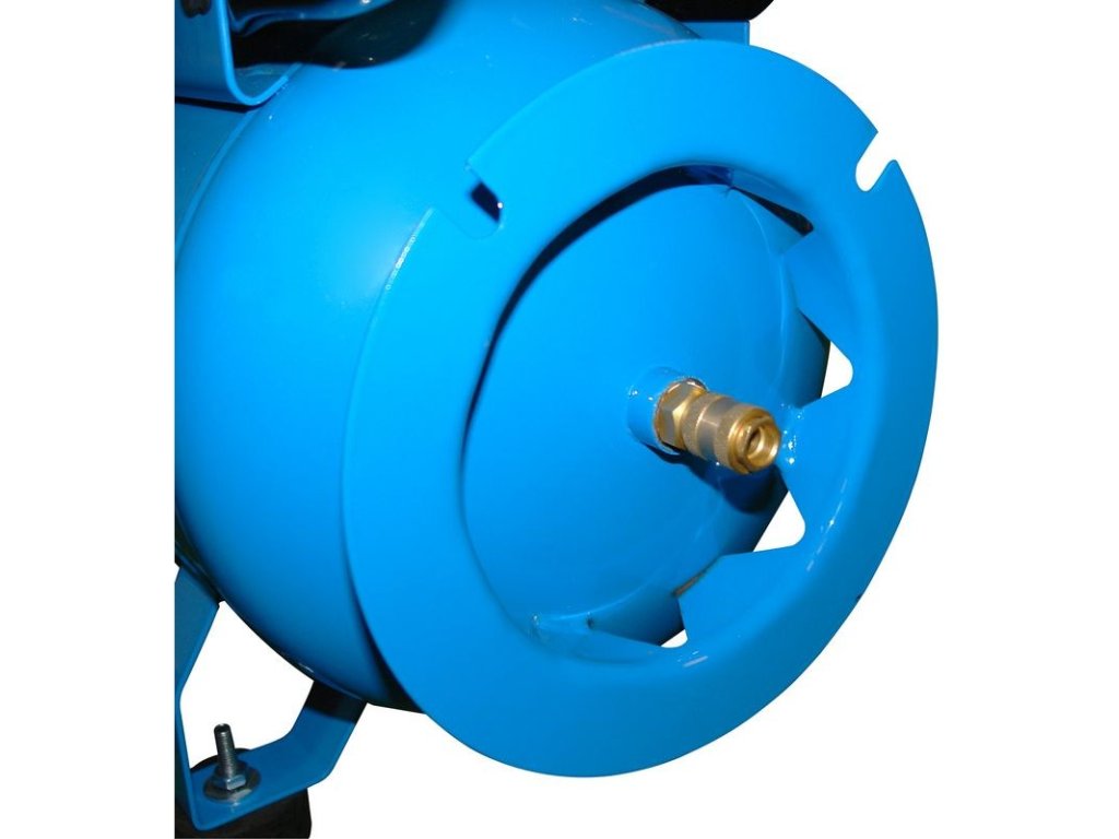 Dvojvalcový kompresor s olejovým mazaním, s remeňovým pohonom. Tlakový spínač Condor, manometer tlaku v nádobe a manometer pracovného tlaku, redukčný ventil a odlučovač vody, 3 spojky na stlačený vzduch, dochladzovač, spätný ventil, vypúšťací ventil na kondenzát. Bezpečnostný ventil, vzduchový filter, ochrana proti preťaženiu. Dvojitá noha s gumovým tlmičom, plastové kolesá, držiak vzduchovej hadice.