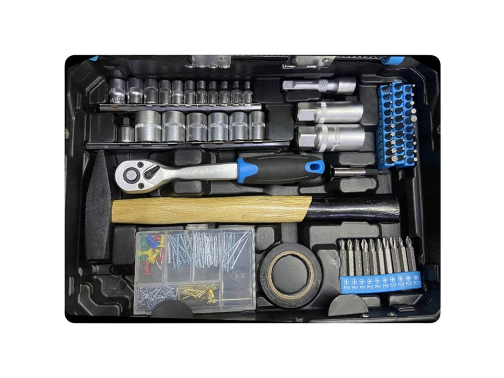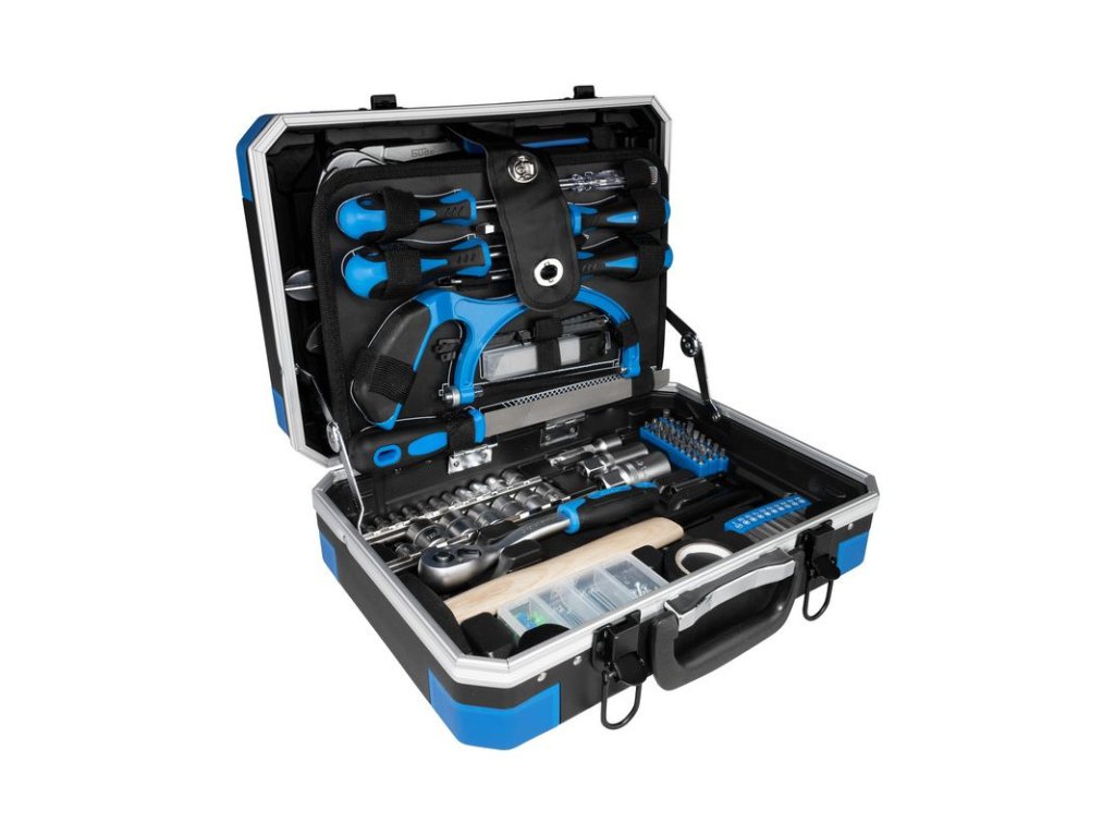 Základná výbava náradia pre každého domáceho majstra. 241-dielna súprava náradia vyrobená z chróm-vanádiovej a uhlíkovej ocele v praktickom kufríku zahŕňa klasický sortiment skrutkovačov, račňu s rôznymi nástrčnými kľúčmi, viaceré kliešte a vidlicovo-prstencové kľúče, pílku. Široký sortiment bitov vrátane dlhých bitov. Samozrejme, nechýba ani vodováha, skladací meter, kladivo a iné náradie. Súčasťou kufríka je aj praktický box s rôznymi spojovacími prvkami, ako sú klince a skrutky