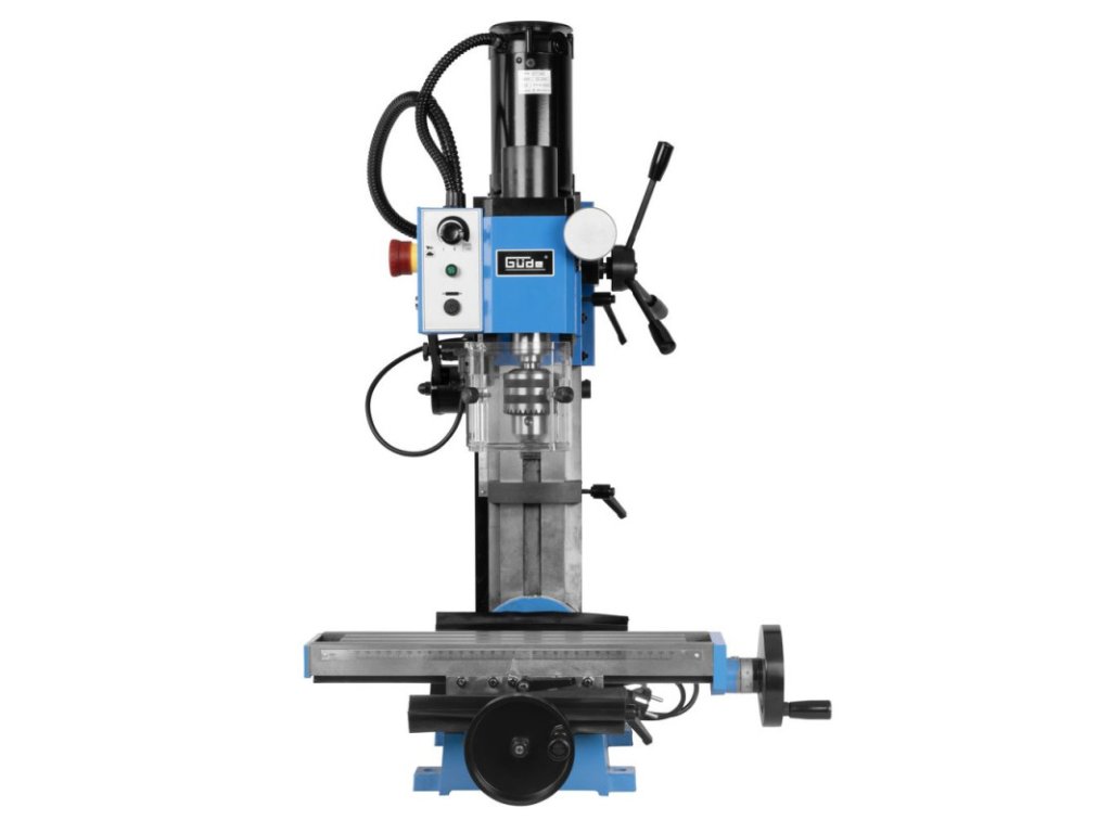 Hlava stroja s rybinovým vedením, vŕtacia hlava sklopná o +/- 45°. Upínanie vretena MK3 a kužeľ skľučovadla B16. Vysoká sústrednosť (<0,04 mm). Ručné kolieska s nastaviteľnými krúžkami stupnice. Jemné nastavenie pre vŕtanie a frézovanie. Upevňovací čap na zaistenie vretena. Vymeniteľná poistka. Ochrana proti pilinám. Plastová nádoba na olej, skľučovadlo, vidlicový, hákový a imbusový kľúč.