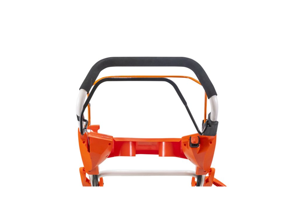 Ergonomický skladací systém rukoväte a zberného vrecka uľahčuje skladovanie alebo prepravu kosačky RURIS RX441S.