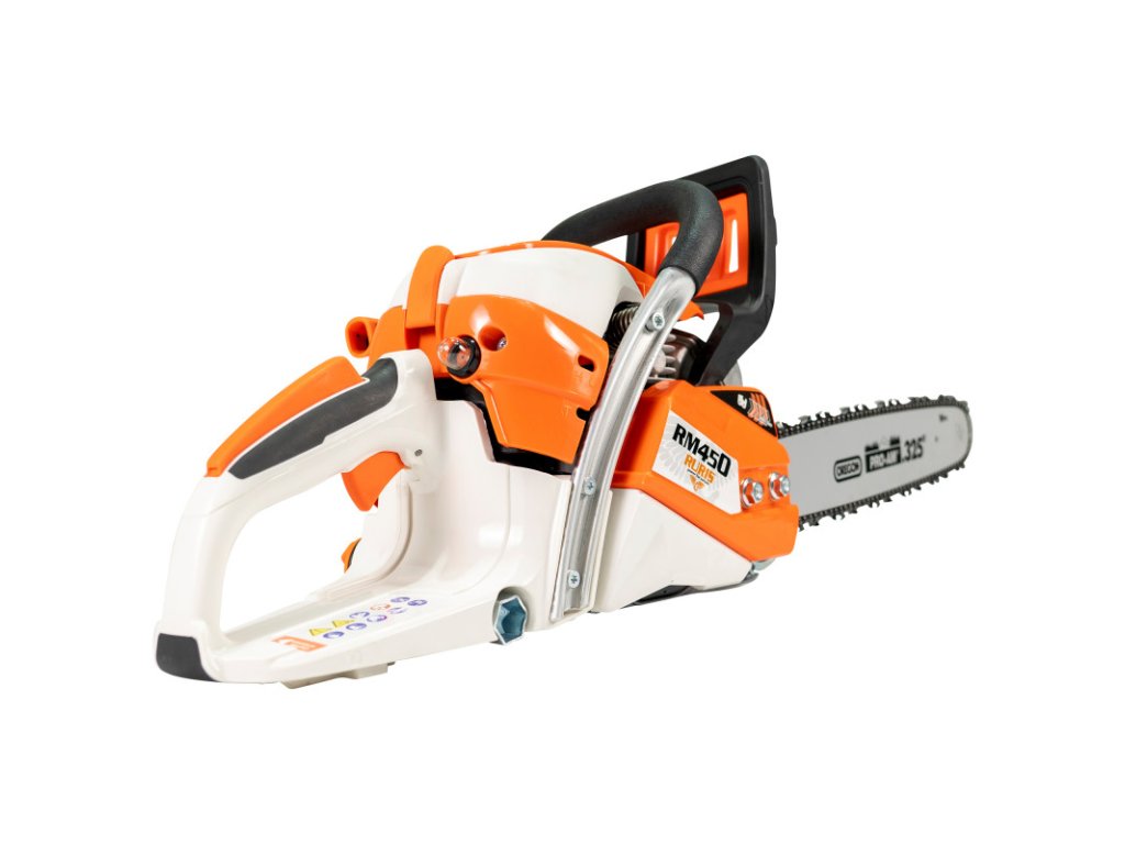 Reťazová píla RURIS RM450 vybavená motorom s výkonom 3 PS, má vynikajúci rezný výkon a môže pomôcť pracovať rýchlejšie aj s dlhými vodiacimi lištami. S jednoducho nastaviteľným karburátorom Walbro v kombinácii s lepším vyvážením a komfortnými funkciami dokonale spája tradičnú technológiu s moderným vývojom.