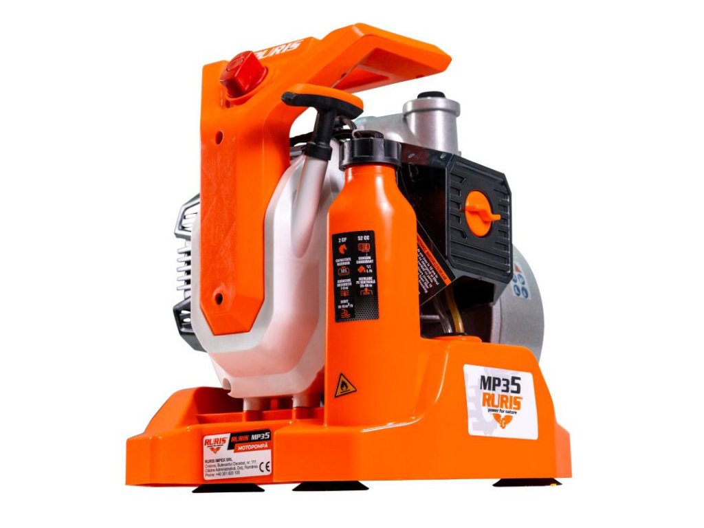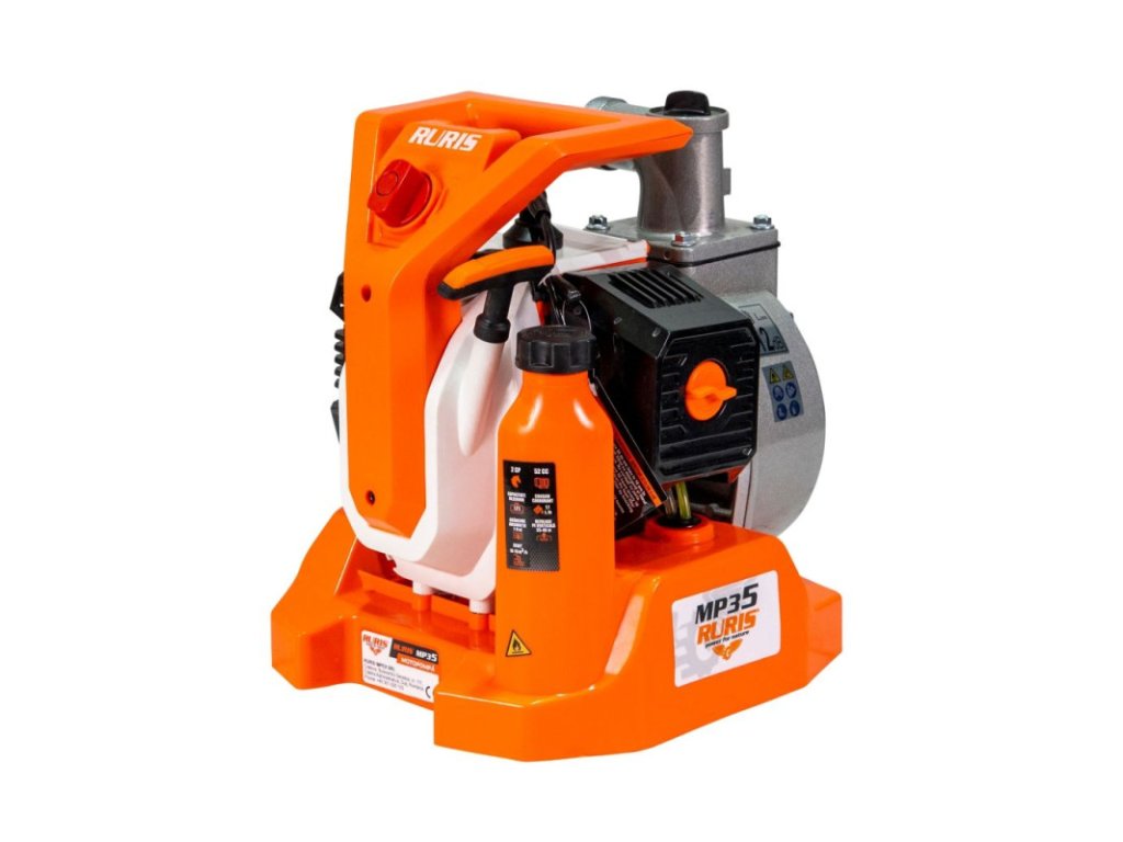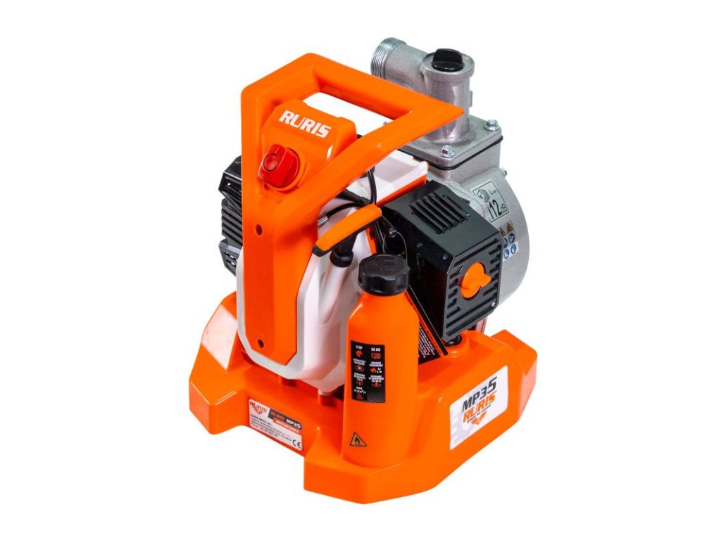 Motorové čerpadlo RURIS MP35 vybavené motorom TEZ má 2-taktný pracovný cyklus a výkon 2 HP. Objem valcov je 52 cm3 a systém zapaľovania je elektrický.