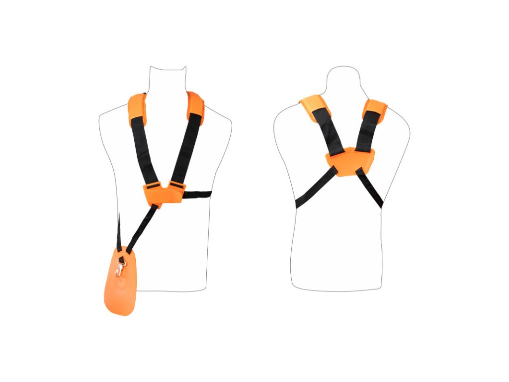 Dvojitý vyvažovací popruh a ergonomické rukoväte: Krovinorez je vybavený dvojitým vyvažovacím popruhom a ergonomickými 2-segmentovými rukoväťami a zaisťuje rovnomerné rozloženie hmotnosti a zvýšené pohodlie pri dlhodobom používaní.