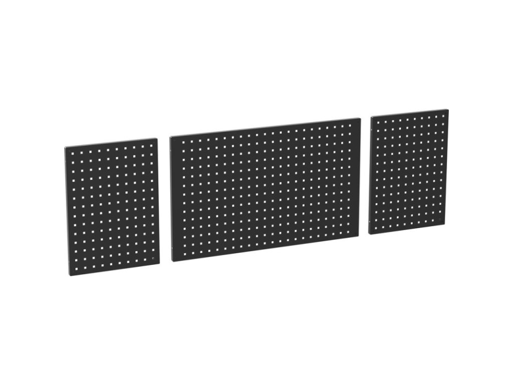 Trojdielna perforovaná stena XL je dokonalým doplnkom radu Güde Eco-Line, s ktorým sa dá optimálne využiť priestor na stene nad dvoma pracovnými stolmi XL od výrobcu GÜDE. Praktické rozdelenie na tri časti, možnosť montáže aj samostatne. Ideálne v kombinácii s vhodnou nástennou skrinkou. Štandardizovaná štvorcová perforácia 9 x 9 mm, vzdialenosť stredov otvorov 38 mm. Oceľový plech s práškovou povrchovou úpravou.
