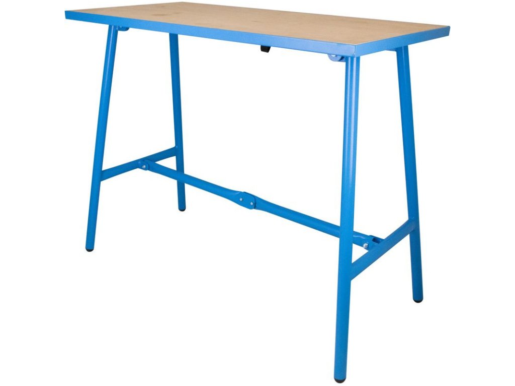 Sklápací pracovný stôl využiteľný v domácnosti, v garáži, v dielni alebo na stavbe. Pevná rúrková konštrukcia, priestorovo nenáročná vďaka skladaciemu mechanizmu. Robustná stolová doska je vyrobená zo špeciálneho viacvrstvového dreva, s oceľovými hranami po celom obvode.