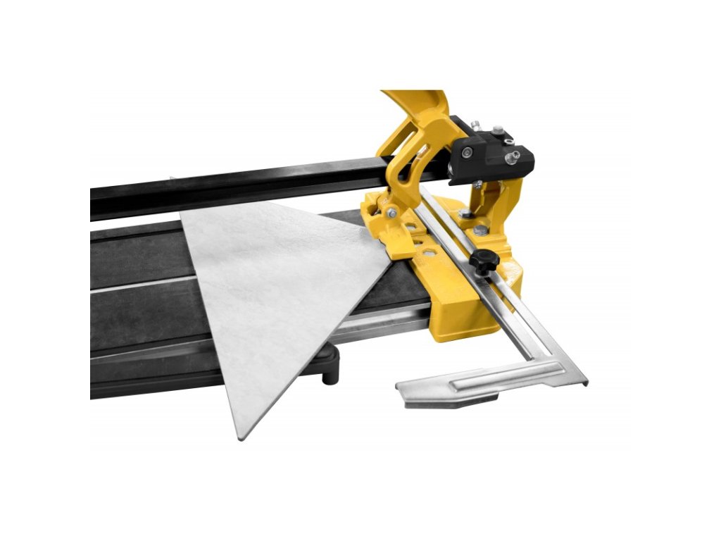 Profesionálna ručná rezačka dlaždíc GHF 800 na ľahké delenie porcelánových a keramických dlaždíc. Posuvné vedenie s guľôčkovým ložiskom. Kalené rezné koliesko z karbidu volfrámu je obzvlášť ododlné. Pevná hliníková základná doska, ergonomicky tvarovaná rukoväť, protišmyková základňa. Výklopné podpery dlaždíc (protišmykové), nastaviteľný doraz so stupnicou nahrádza pracné meranie a je aretovateľný pomocou upínacej skrutky. Nosnú plochu možno predĺžiť o 30 cm.