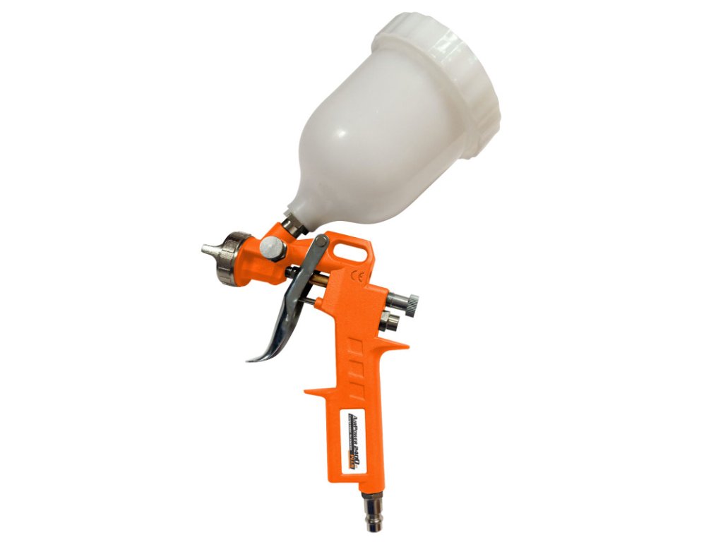 • Striekacia pištoľ s horným kelímkom sa používa na metalické farby, laky, akrylové a vodou riediteľné farby.