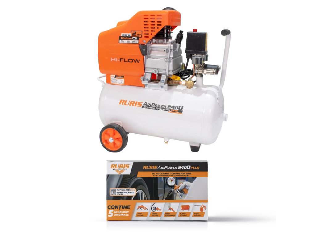 Vlastnosti kompresora RURIS AirPower 2400 sú starostlivo vybrané tak, aby mohol pracovať a dodávať nepretržitý vzduch k príslušenstvu, ktoré je k nemu pripojené používateľom.