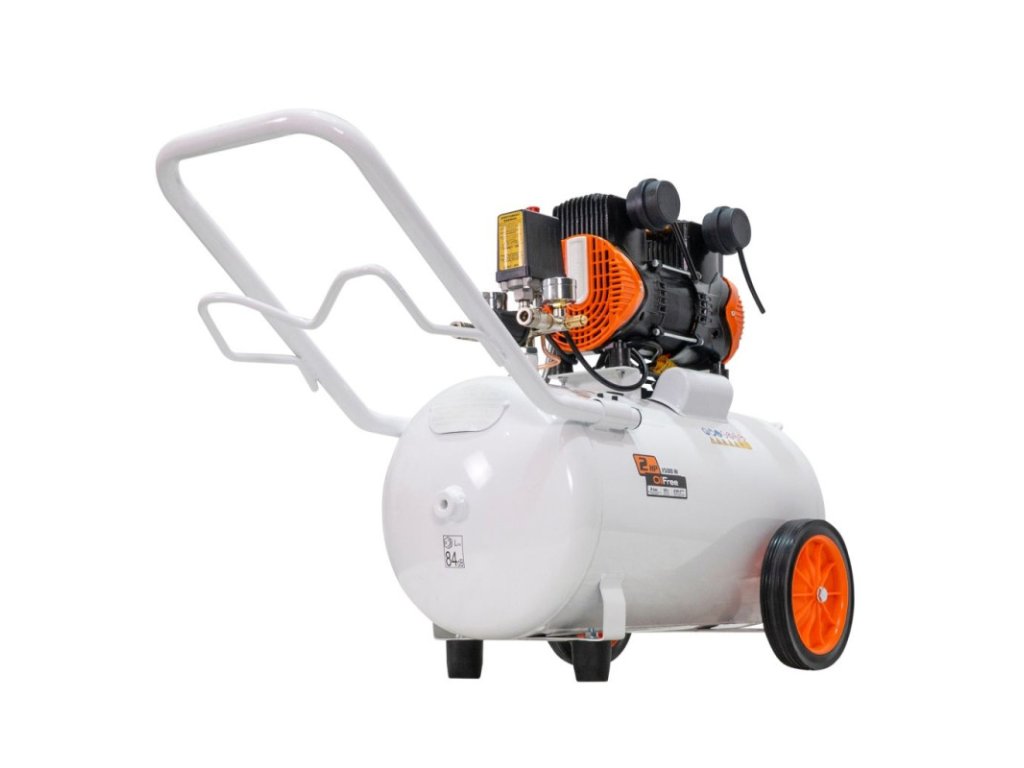Súčasťou sú aj 2 kompresorové valce, ktoré sú navrhnuté tak, aby stláčali vzduch rýchlejšie a rovnomernejšie, čím sa zabezpečí konštantný prietok a stabilný tlak. To skracuje čakaciu dobu na doplnenie nádrže a umožňuje nepretržité používanie pneumatického náradia aj v náročných podmienkach.