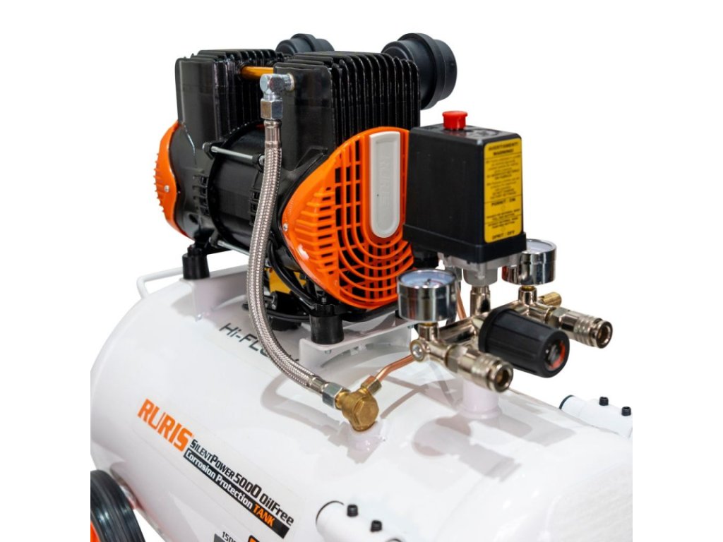 Bezolejový kompresor RURIS Silent Power 5000 je ideálnou voľbou pre prostredia, kde je nízka hlučnosť nevyhnutná, ako sú lekárske kliniky, laboratóriá, dielne na servis elektroniky, komerčné priestory alebo domácnosti. Vďaka bezolejovej technológii (nie je potrebné mazanie) tento model poskytuje čistý stlačený vzduch, vhodný pre rôzne aplikácie, bez rušenia okolitých aktivít.