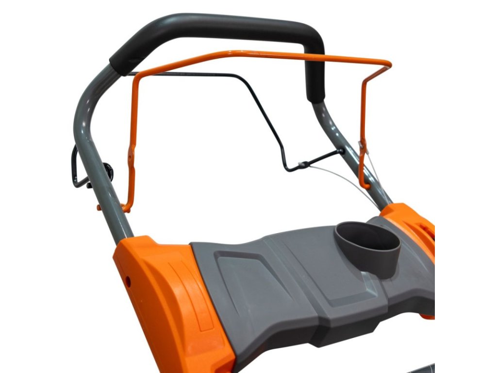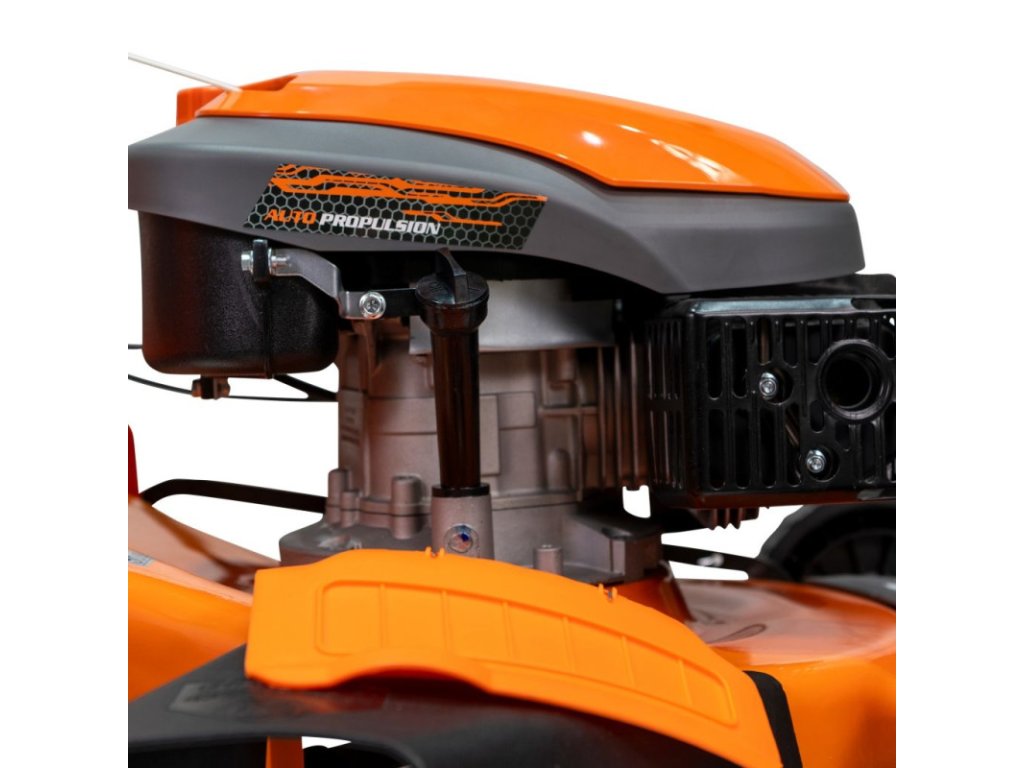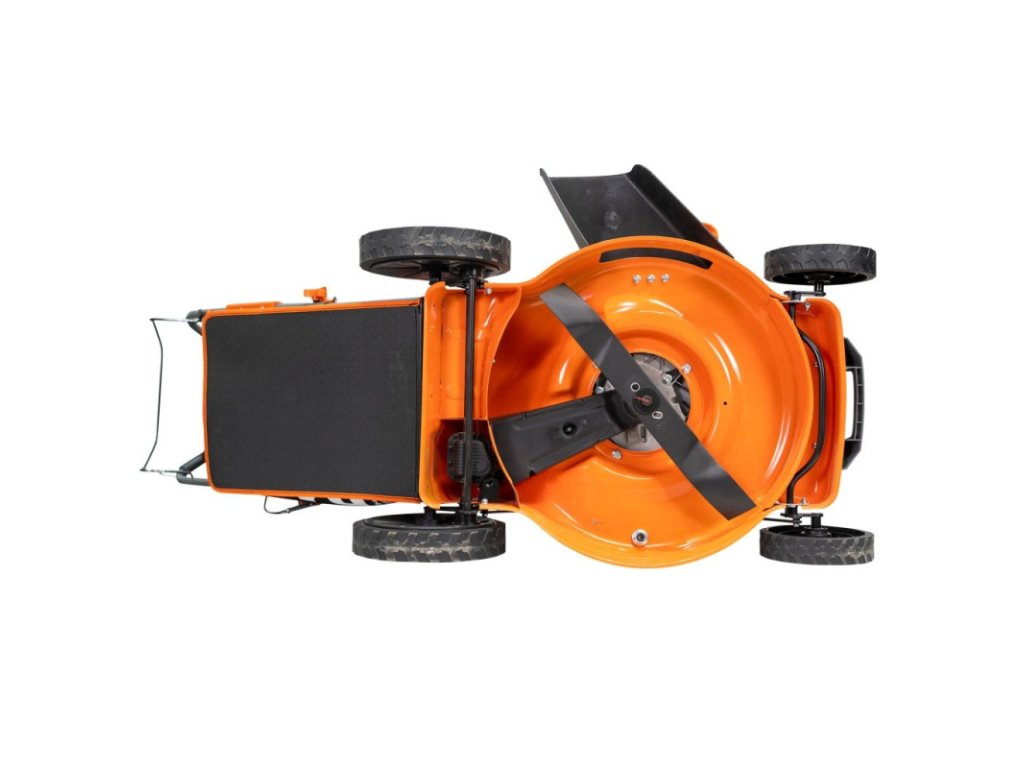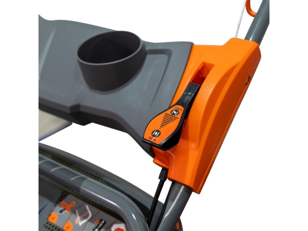 Ergonomický skladací systém rukoväte a zberného koša na trávu uľahčuje skladovanie alebo prepravu kosačky. K tomu všetkému sa pridáva kovový kryt, ktorý stroju dodáva väčšiu odolnosť.
