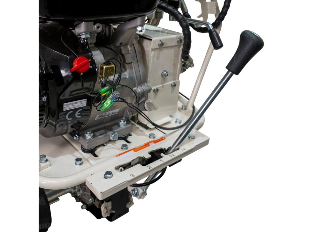 Zároveň má stroj tri prevodové stupne dopredu a jeden spätný prevodový stupeň, čo poskytuje zvýšenú manévrovateľnosť v úzkych priestoroch alebo v oblastiach s prekážkami.