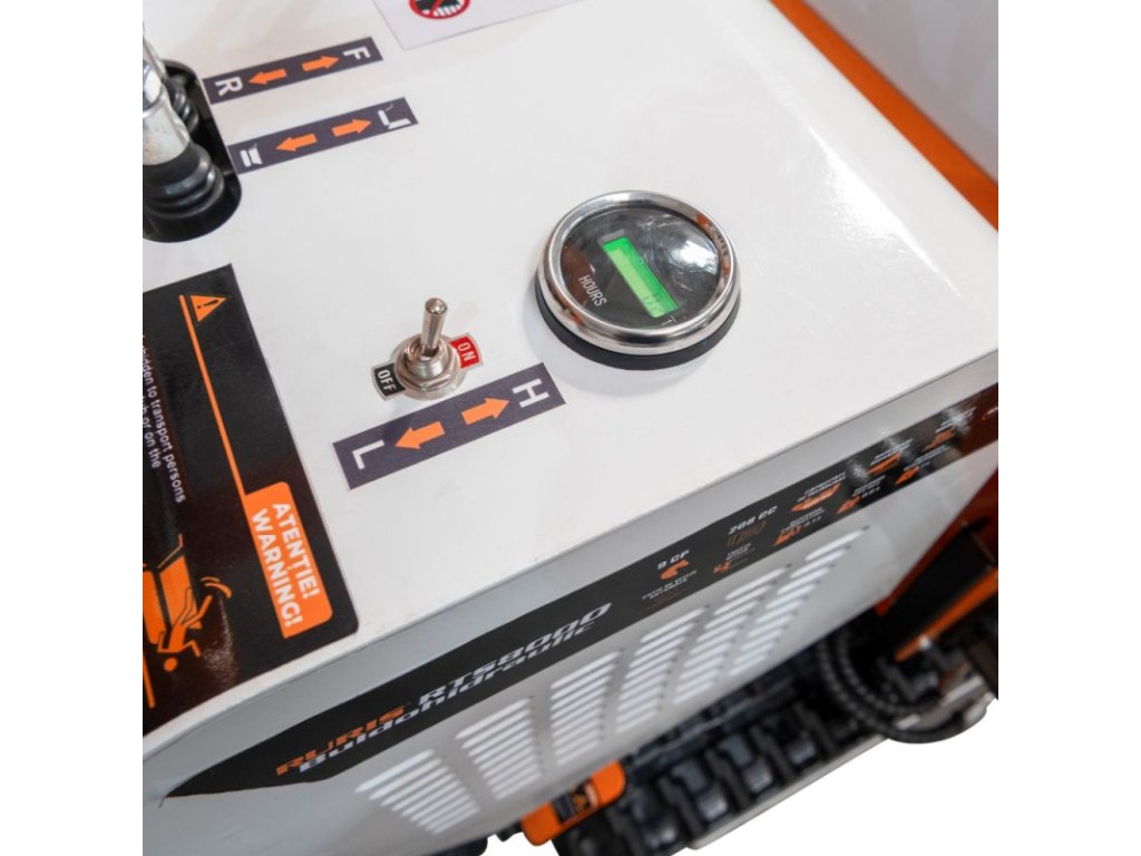 Čelný nakladač RURIS RTS 8000 je vybavený pásmi, čo je nevyhnutná výhoda pre ľahký a stabilný pohyb v ťažkom, klzkom alebo nerovnom teréne, ako je blato, sneh, piesok alebo štrk.