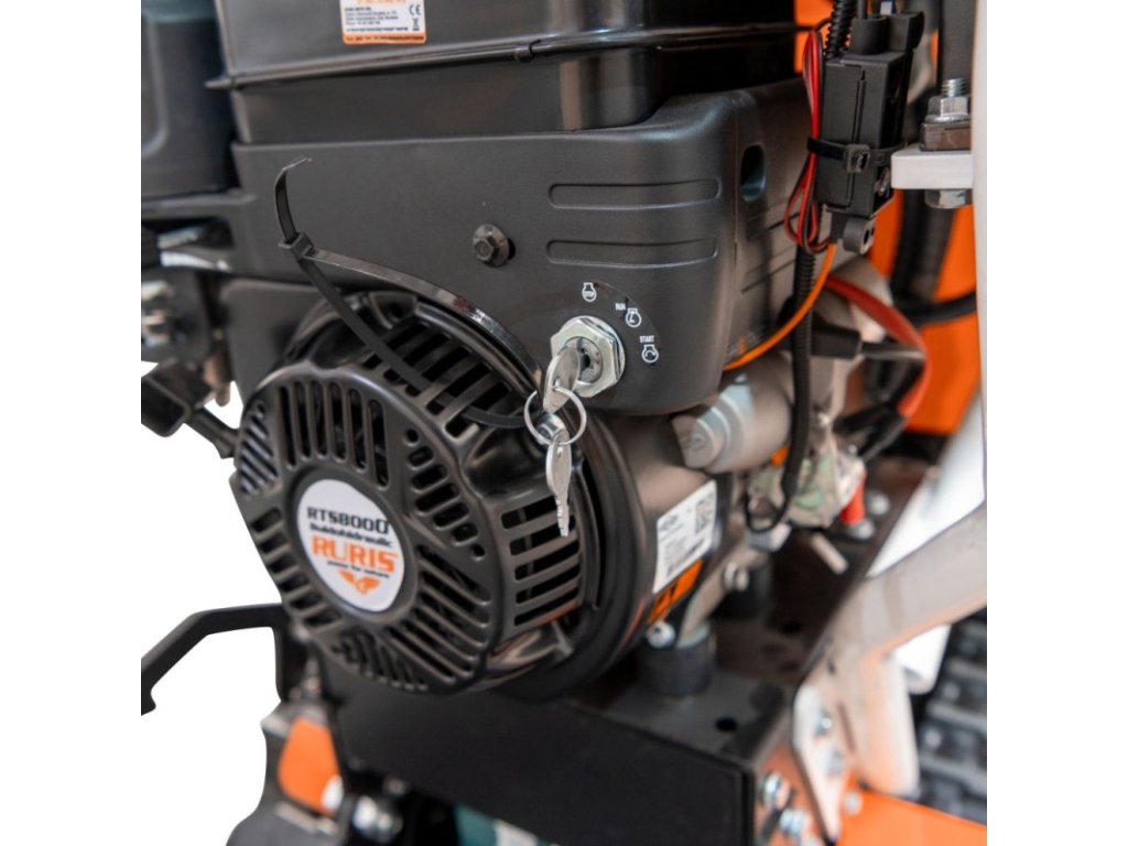 Ďalšou výhodou čelného nakladača RURIS RTS 8000 je jeho 4-taktný benzínový motor, ktorý zaisťuje efektívnu spotrebu paliva a jednoduché štartovanie.