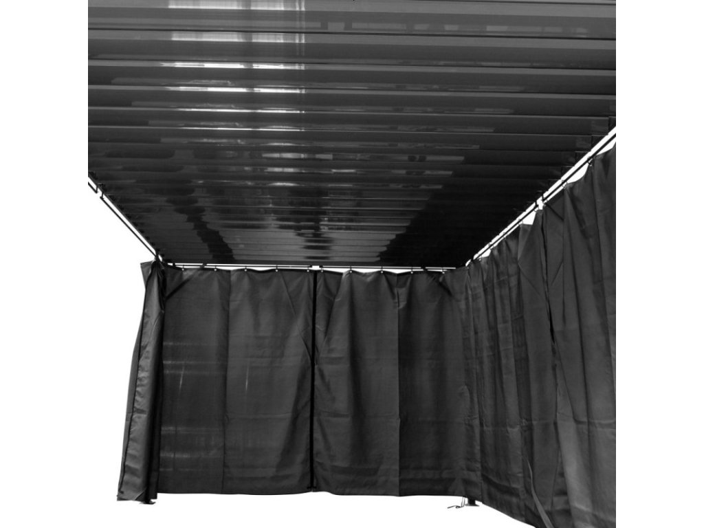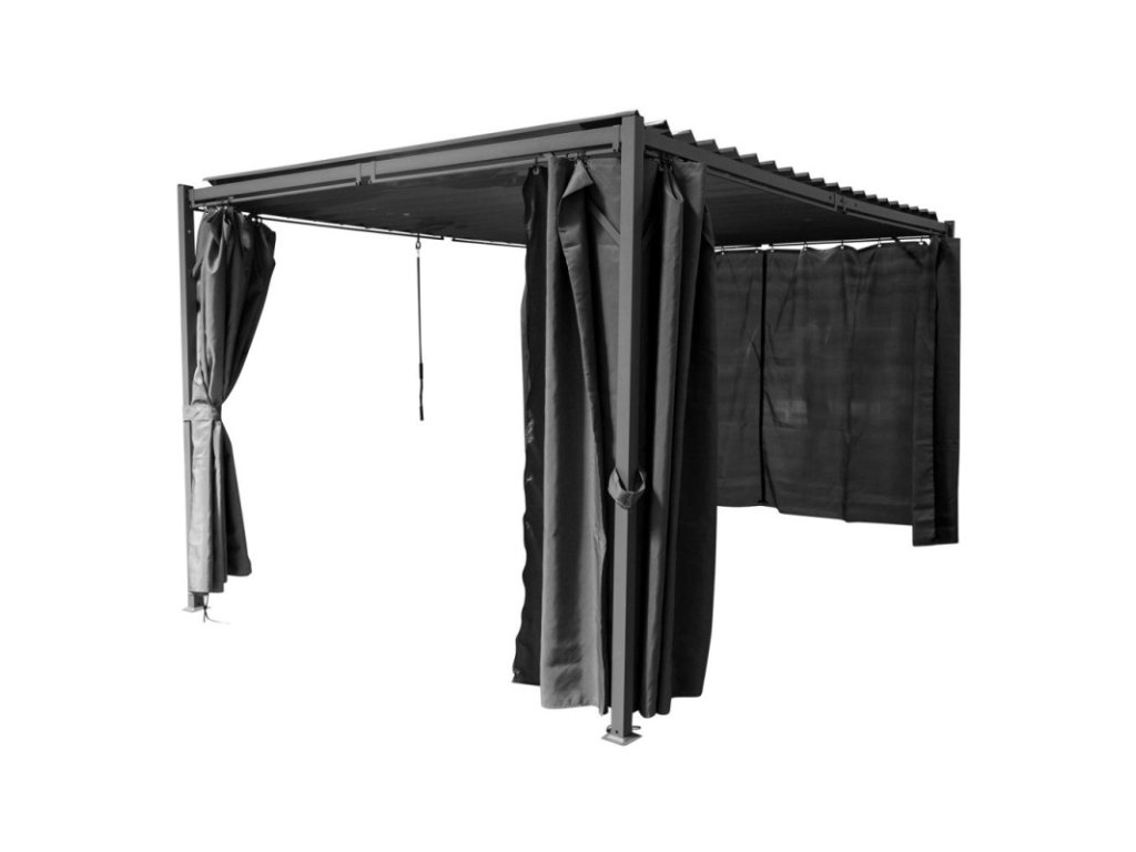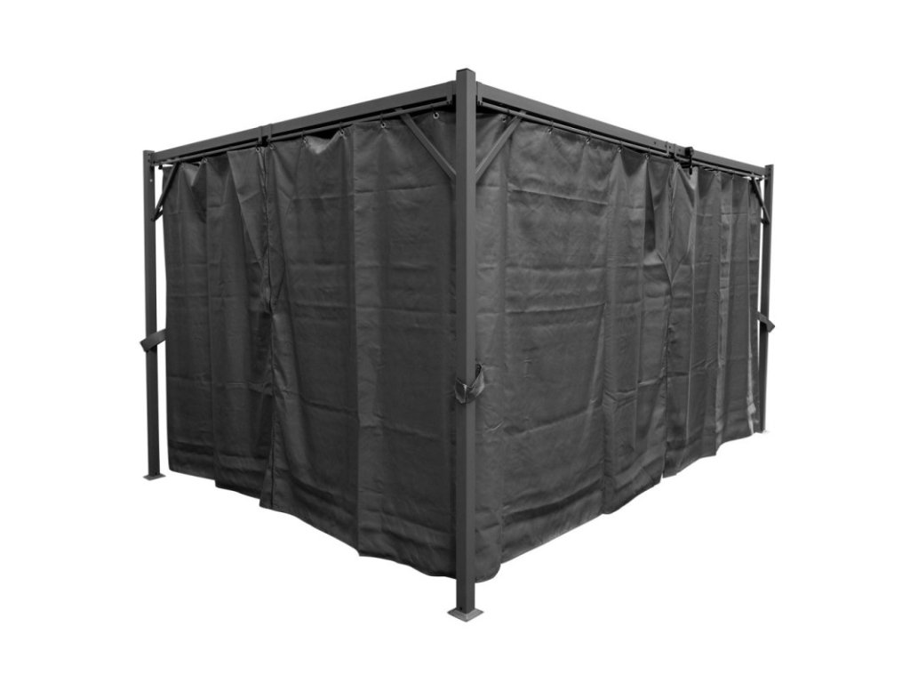 Sada obsahuje 4 závesy v sivej farbe, dokonale zladené s konštrukciou pergoly, a je vybavená závesnými tyčami pre jednoduchú montáž.