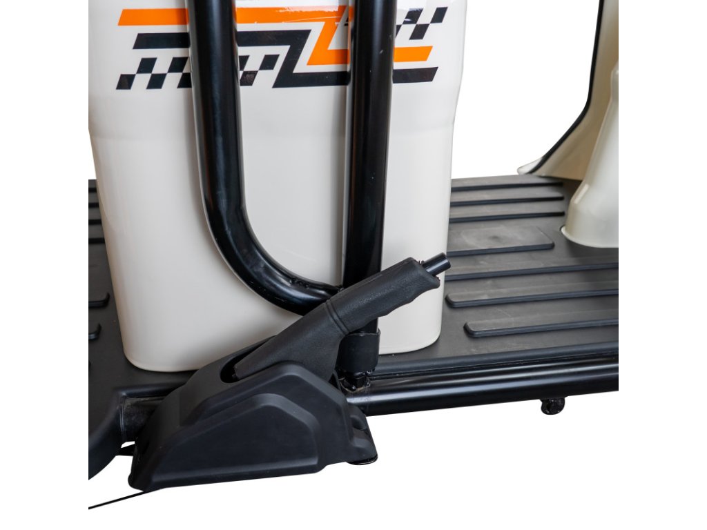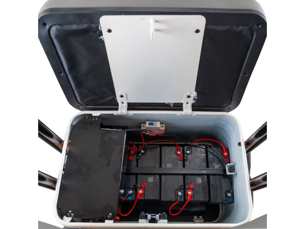 Navyše je vozidlo vybavené plastovou strechou, ktorá poskytuje ochranu vodičovi aj spolujazdcovi počas jazdy. Pre bezpečnosť v noci je k dispozícii aj LED predné svetlo.