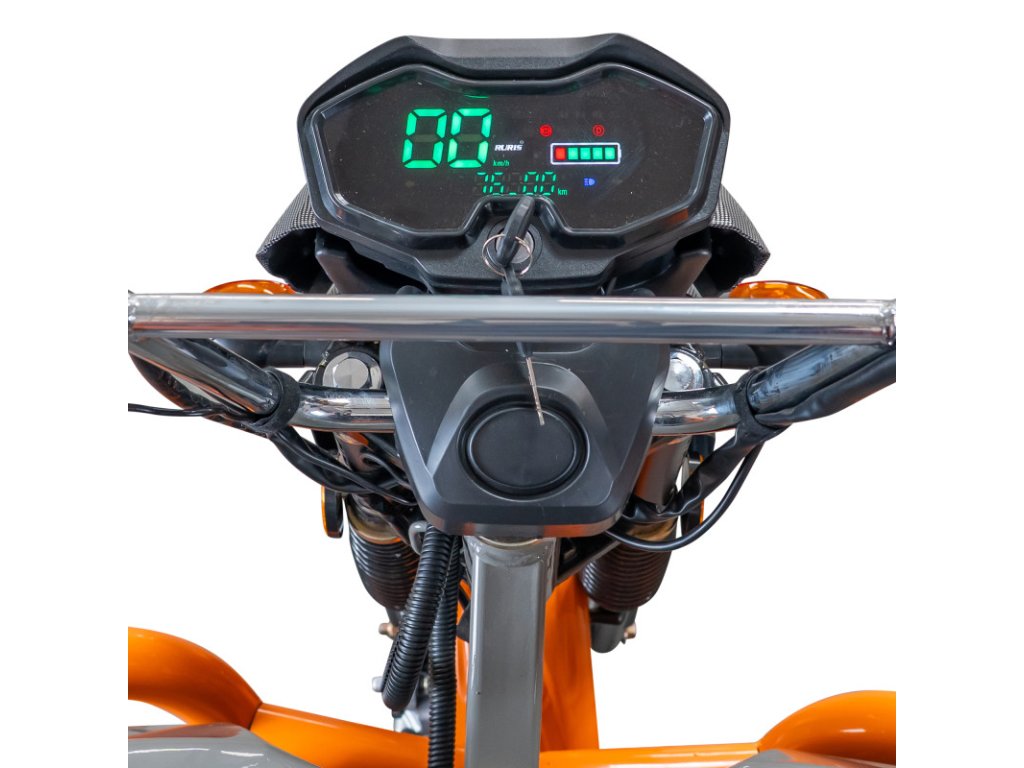 Trojkolka je vybavená extra veľkým LCD displejom, ktorý výrazne zlepšuje používateľský komfort. Veľkorysá obrazovka umožňuje rýchle a prehľadné zobrazenie všetkých dôležitých údajov – rýchlosti, stavu batérie, počtu najazdených kilometrov a ďalších funkcií – aj pri jasnom dennom svetle. Prispieva tak k bezpečnejšiemu a intuitívnejšiemu používaniu.