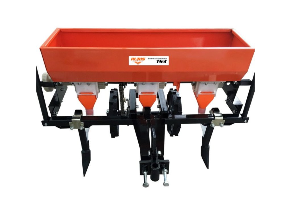 3-radový sejací stroj TS3 je možné pripojiť ku všetkým kultivátorom a malotraktorom RURIS. Tento produkt je ideálnou voľbou na siatie malých a stredných pozemkov, pretože je vhodný pre trávne porasty aj zeleninové plodiny. Vzdialenosť medzi radmi je 35 cm. Ak chcete, aby boli riadky pestované vo väčšej vzdialenosti, môžete stredný riadok odstrániť, čím sa vzdialenosť zväčší na 70 cm.