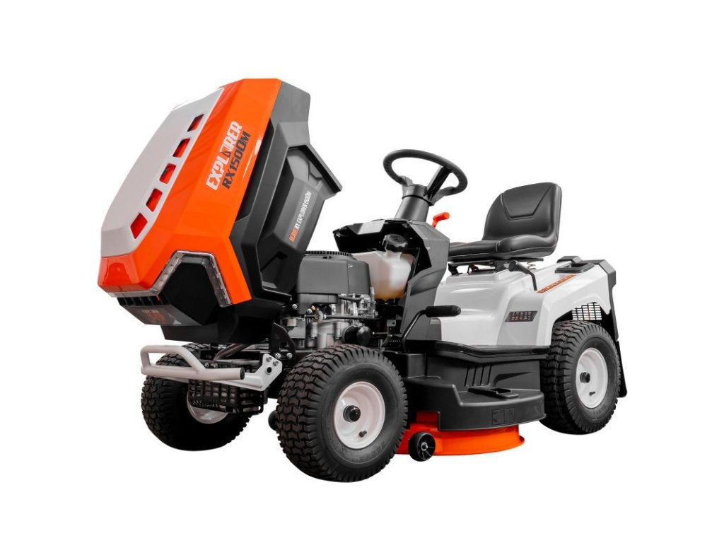 Model záhradného traktora RURIS RX EXPLORER 1500M je typ 2 v 1, vybavený funkciami zberu a samočistenia.