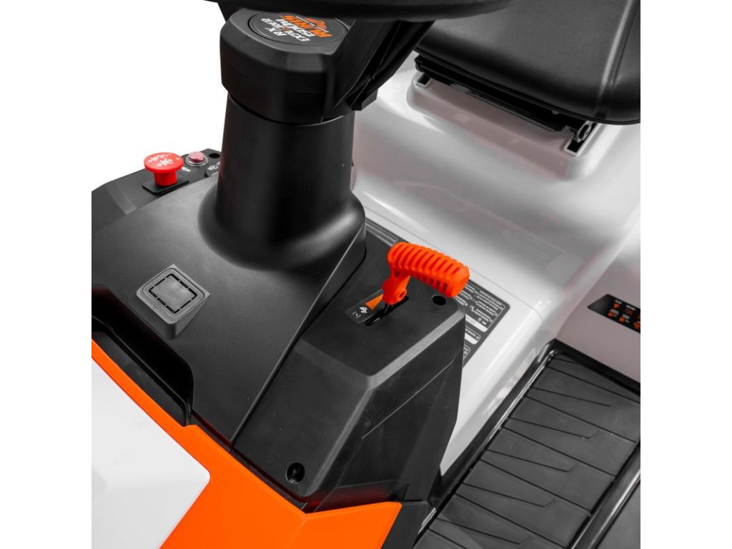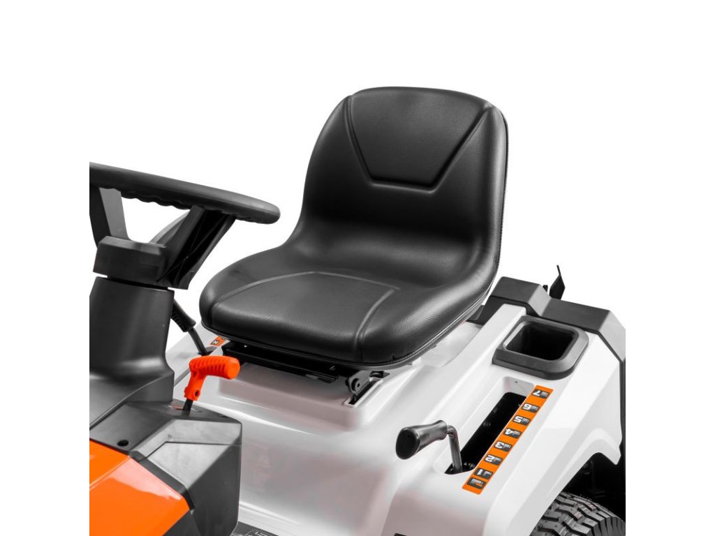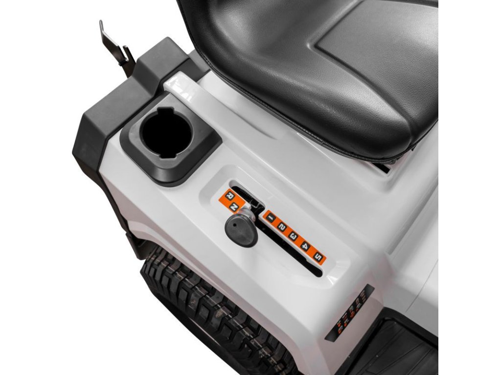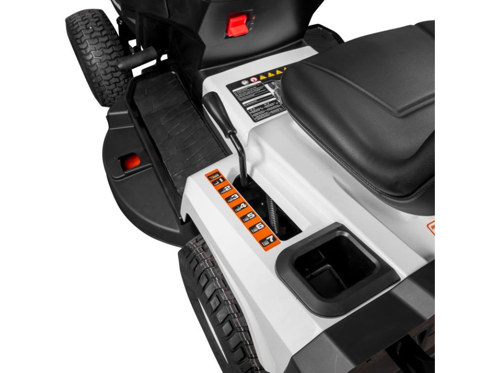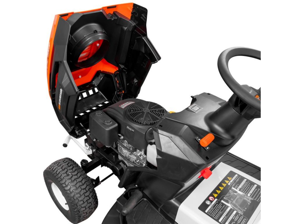 Batéria prístroja má napätie 12V a kapacitu 15 Ah, zaisťuje dostatok energie na spustenie a prevádzku. Maximálna rýchlosť traktora je 9 km/h, čo umožňuje rýchle pokrytie veľkých plôch trávnika. Benzínová nádrž traktora má veľkorysý objem 6 litrov a olejová vaňa pojme až 1,2 litra, čo zaisťuje primeraný prevádzkový interval medzi tankovaním a výmenou oleja.