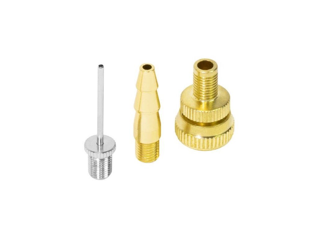 Adaptéry na fúkanie (ihla na nafukovanie lôpt, vsuvka na bicykle, adaptér na nafukovanie matracov), kompatibilné so všetkými typmi hustiliek na pneumatiky so skrutkovým ventilom a ventilovou zástrčkou Michelin. Typ balenia: SB (závesné).