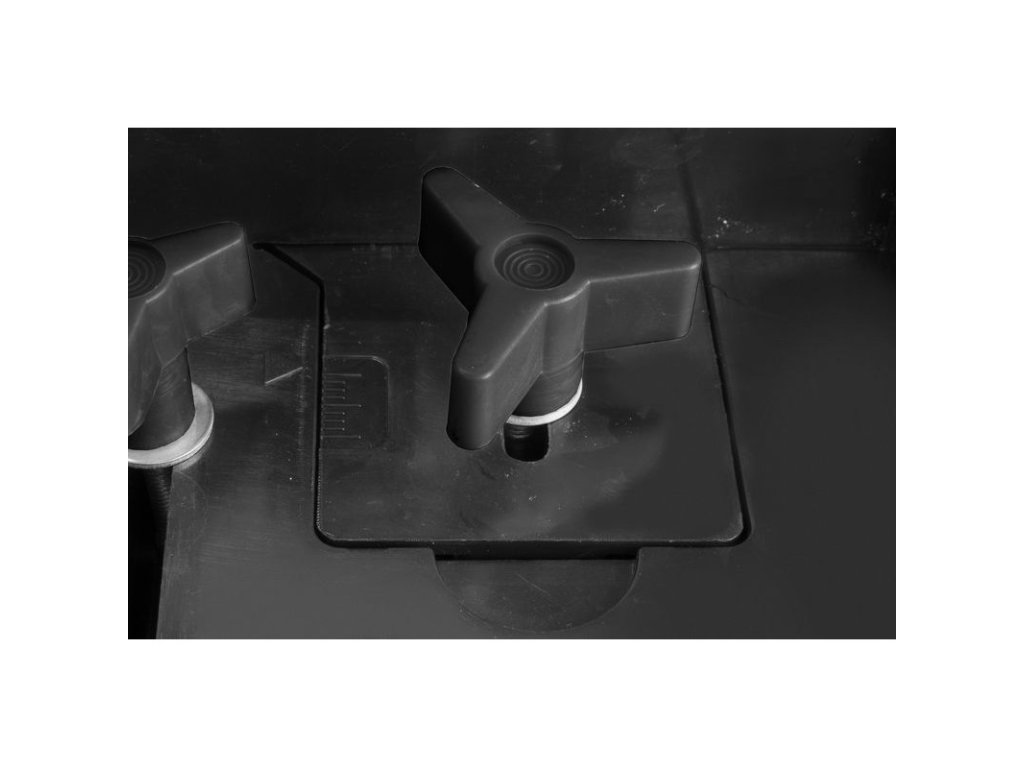 Stôl na vrchnú frézu z tlakovo liateho hliníka s vodiacimi drážkami pre pozdĺžny doraz. Predĺženie stola z oceľového plechu s práškovým nástrekom. Upínacie zariadenie na upevnenie vrchnej frézy, bezpečnostný núdzový spínač na prednej strane stola, uhlový doraz, nastaviteľná vodiaca zarážka. Prípojka na odsávanie.