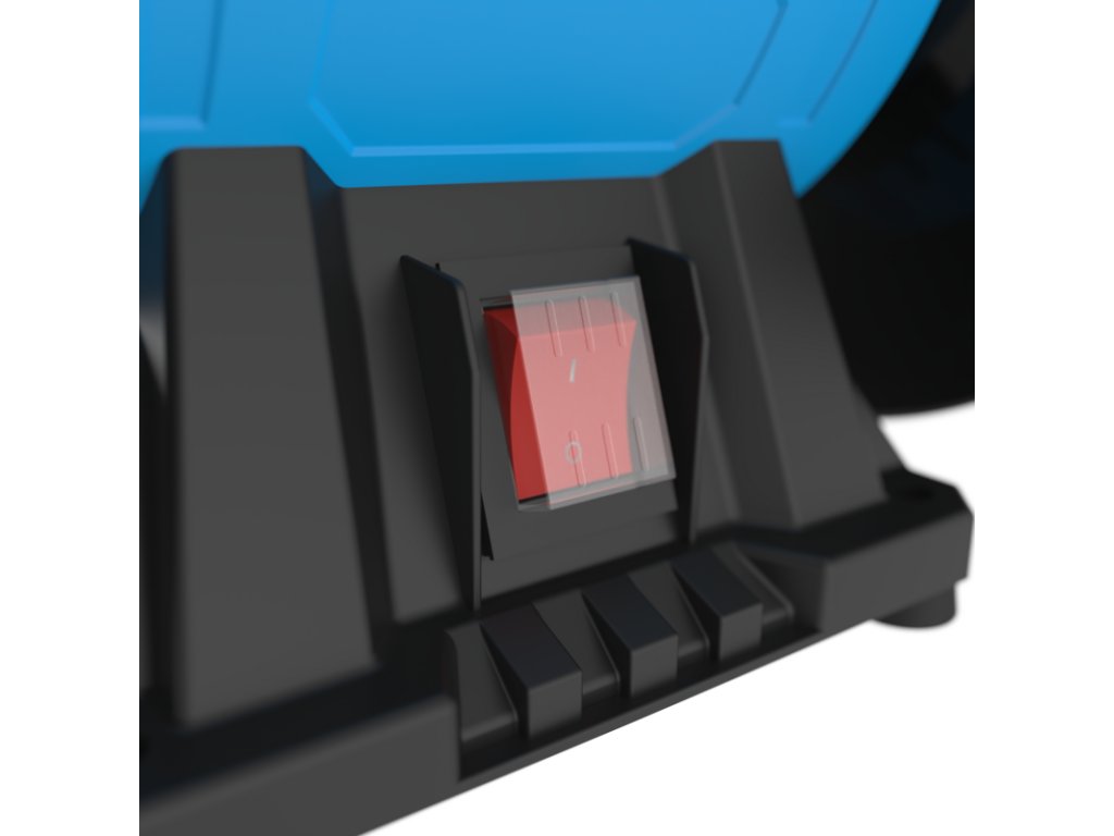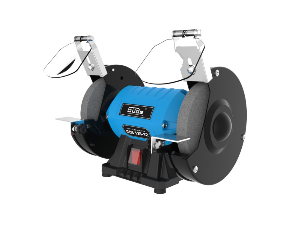 Stolová dvojkotúčová brúska s ochrannými krytmi proti iskrám, stabilná základňa, osi uložené v guľôčkových ložiskách, kondenzátorový motor, chod bez vibrácií. Polohovateľné pracovné opierky, brúsny kotúč na hrubé a jemné brúsenie.