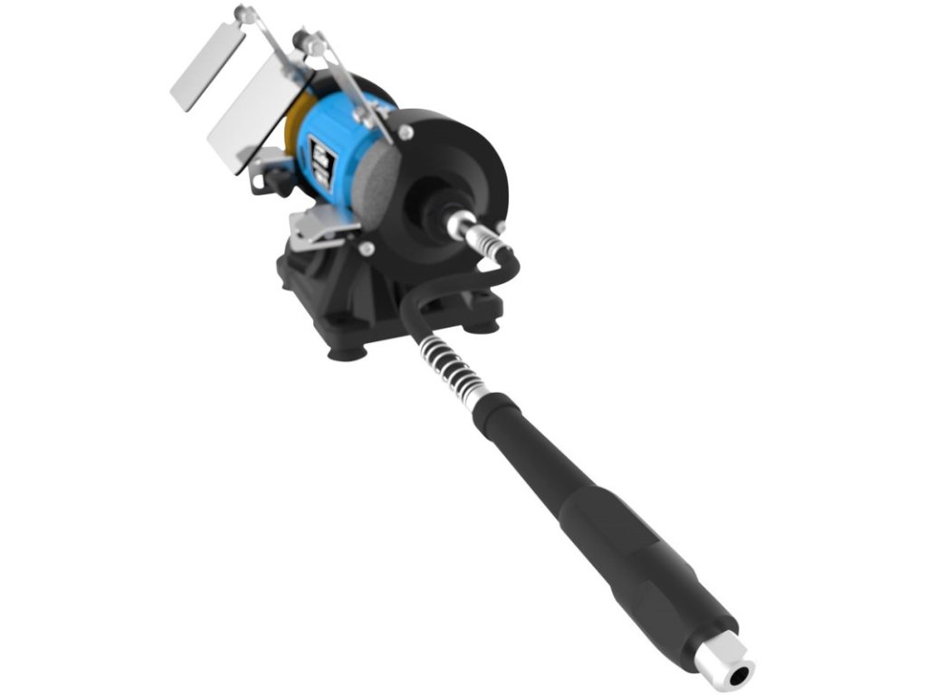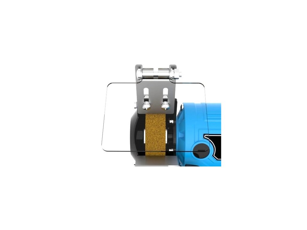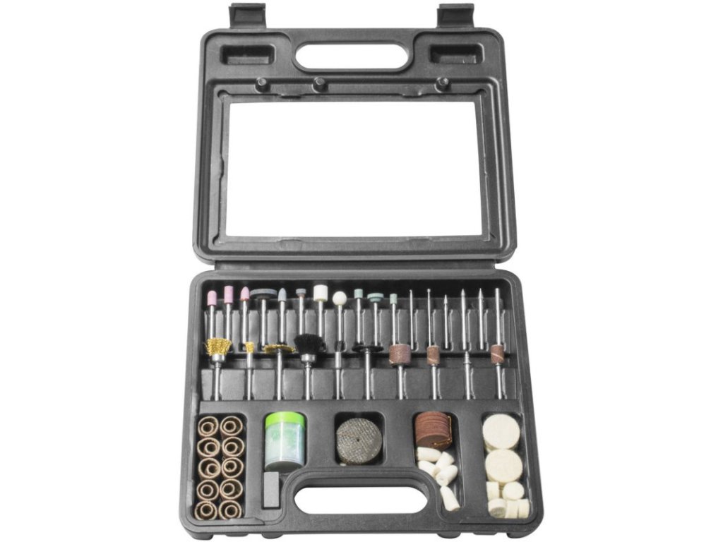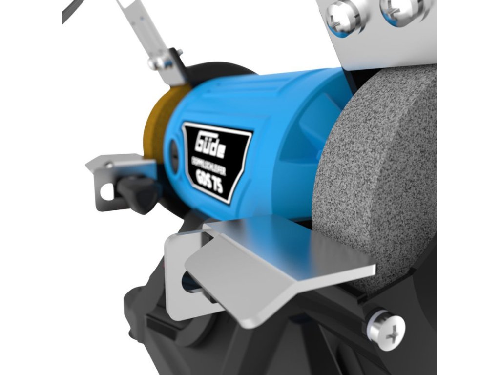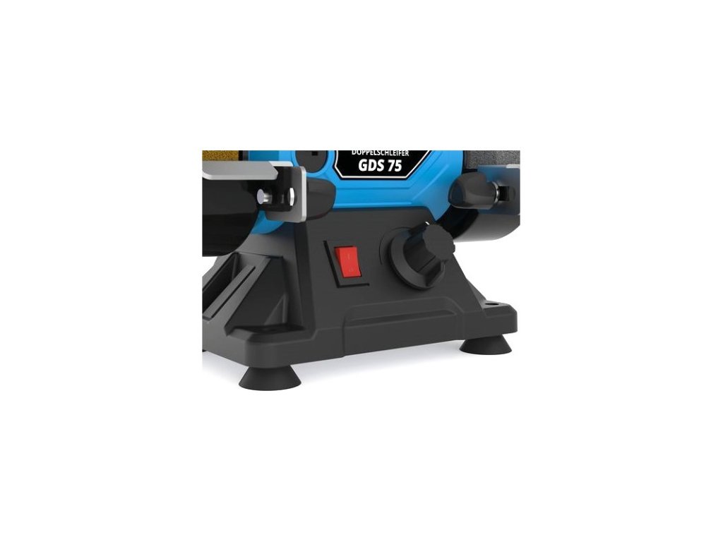 Stolová dvojkotúčová brúska s ochrannými krytmi proti iskrám s možnosťou nastavenia, stabilná základňa, variabilne nastaviteľná rýchlosť pohonu. Jemná práca vďaka nastaviteľnému hnaciemu hriadeľu. Kufor na náradie obsahuje 100-dielnu súpravu príslušenstva na brúsenie.