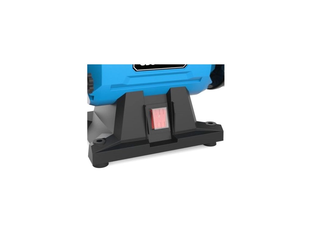Kombinovaná brúska s kondenzátorovým motorom, stabilné umiestnenie stroja, pokojný chod bez vibrácií, brúsne osky v guľôčkových ložiskách, prestaviteľné pracovné opierky, s ochranným krytom proti iskrám. Zrnitosť kotúča na jemné brúsenie 36, zrnitosť brúsneho pásu 80.