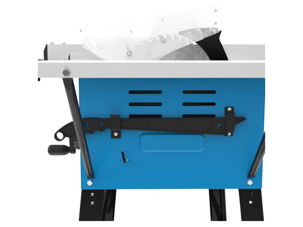 Stolová kotúčová píla s plynule nastaviteľnou výškou pílového kotúča. Pracovný stôl z hliníka, hliníková paralelná zarážka, nastavenie sklonu pomocou ručného kolieska, rozšírenie stola z oceľového plechu, oceľová skriňa potiahnutá práškovou vrstvou, pripojenie pre odsávací systém. Pílový kotúč z tvrdokovu, konzola na odkladanie príslušenstva, príložník s milimetrovou stupnicou.