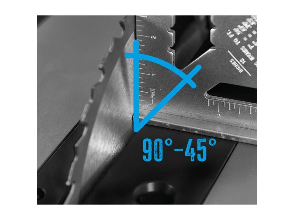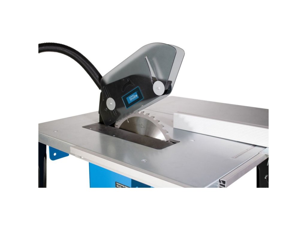 Kotúčová píla s pozinkovaným pracovným stolom, pozdĺžnym a uhlovým dorazom. Nastavenie výšky pílového kotúča pomocou kľuky, pílový kotúč možno sklopiť o 90° - 45°, pripojenie pre odsávací systém. Prepravné kolesá, riadiaca rukoväť, odnímateľný nadstavec na stôl, 1x pílový kotúč HM.
