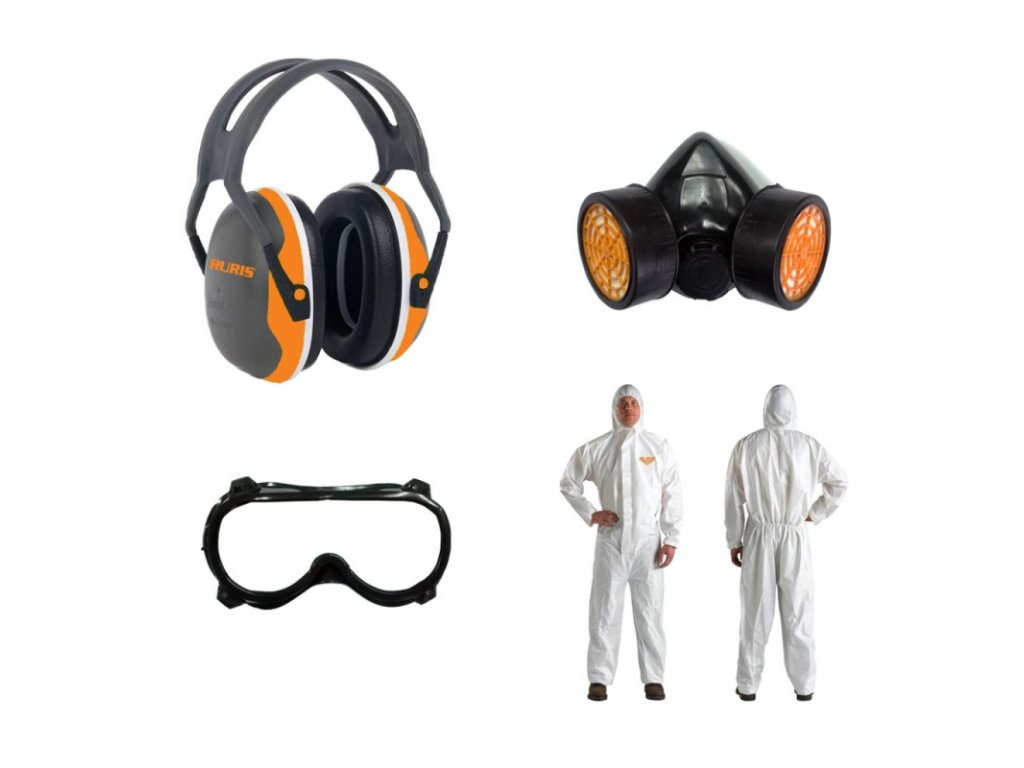 Súprava ochranných pomôcok k rosiču sluchátka, okuliare, maska, overal