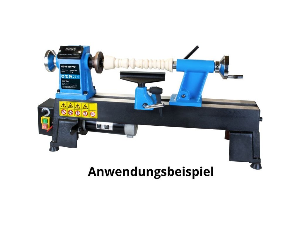 Sústruh na obrábanie dreva s digitálnym displejom, výrobu originálnych tanierov, misiek, svietnikov. Upínacia doska o priemere 80 mm, závit vretena M33x3,5 s vnútorným kužeľom MK2, opierka nástroja 150 mm. Predĺženie lôžka sústruhu 550 nie je súčasťou balenia, možné doobjednať (kód tovaru: 11433).