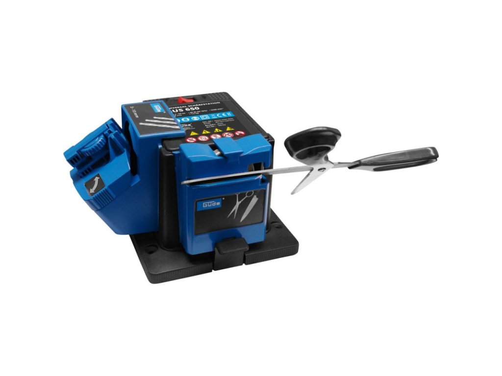 Viacúčelová ostrička s integrovaným zariadením na brúsenie vrtákov, na ostrenie/brúsenie kuchynských nožov a nožníc, záhradníckych nožníc, špachtlí, skrutkovačov, dlát, hobľovacích nožov, sekier a podobne. Brúsny kameň pokrytý diamantom.