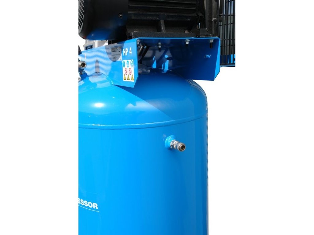 Stacionárny dvojpiestový kompresor s olejovým mazaním, s remeňovým pohonom. Tlakový spínač s integrovanou ochranou motora, manometer tlaku vo vzdušníku a manometer pracovného tlaku, 2 spojky na stlačený vzduch, chladič, redukčný ventil, poistný ventil, vypúšťací ventil na kondenzát. Pretlakový ventil, vzduchový filter.